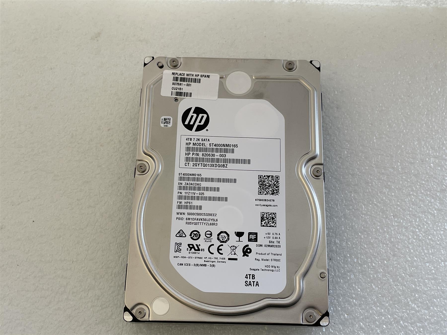 - 907591-001 HP HDD Hard Disk Drive 4TB