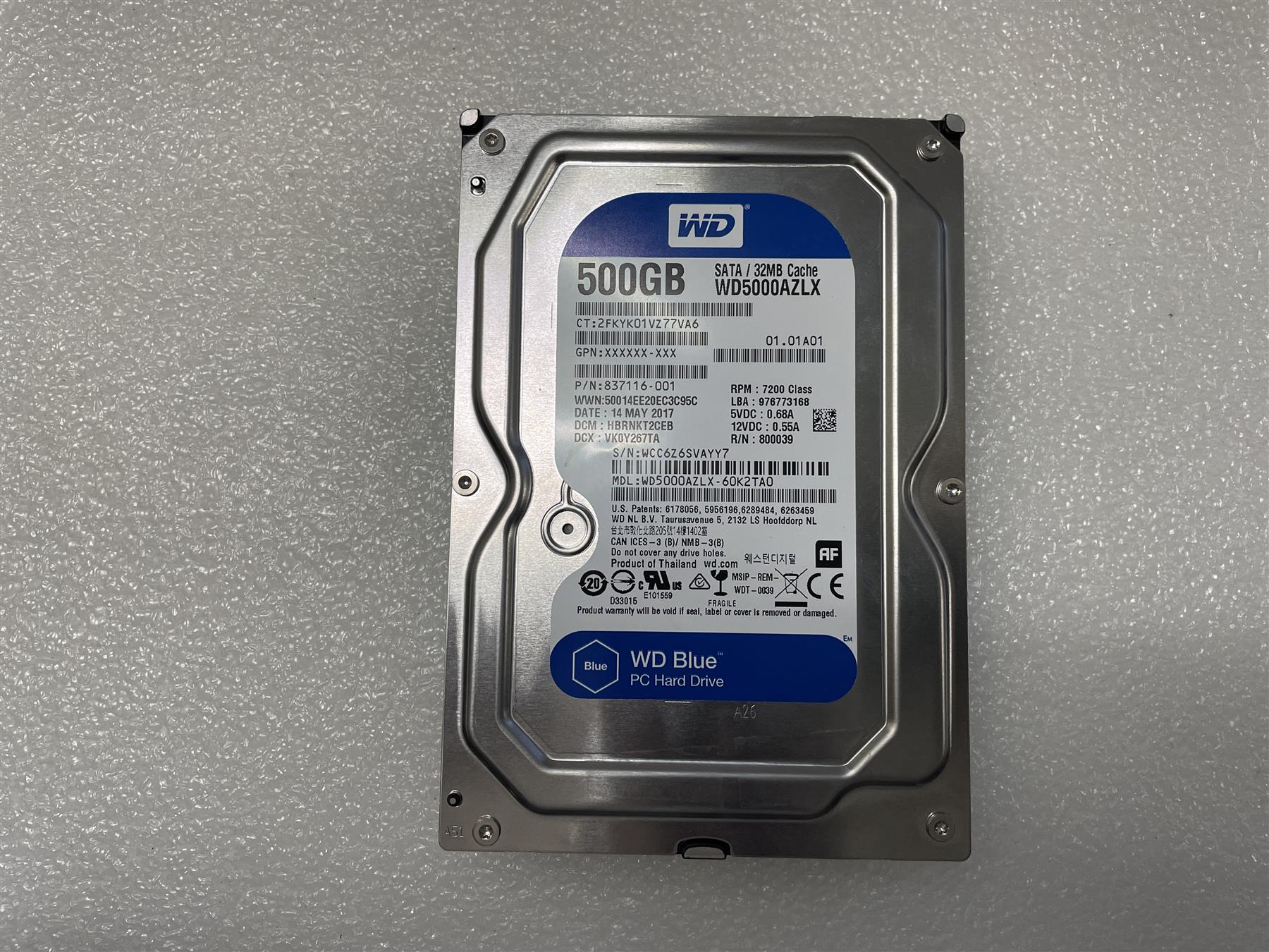 For HP L65220-001 Western Digital WD5000AZLX 500GB 3.5 SATA HDD Hard Disk Drive