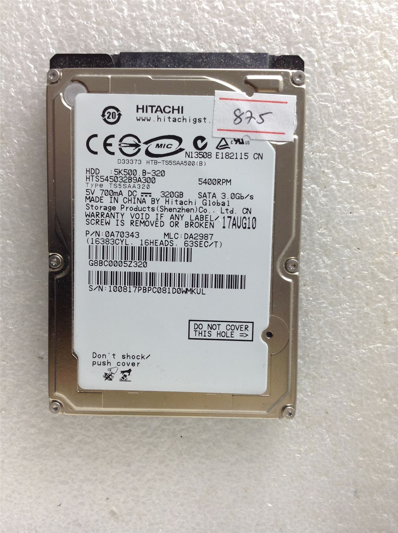 Hard Disk Drive HDD spares parts FAULTY HITACHI HGST 320GB 5K500 B-320 0A70343