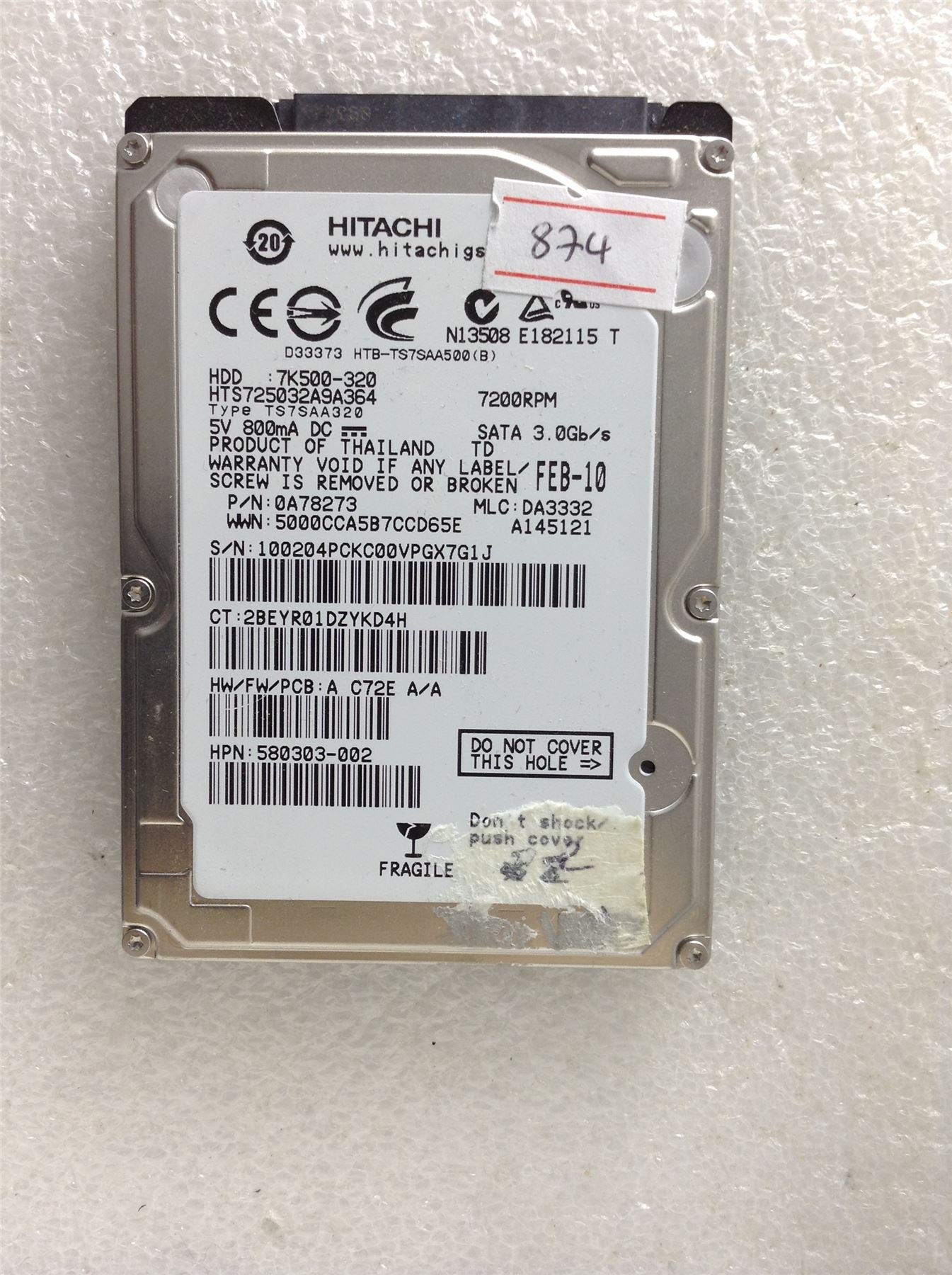 Hard Disk Drive HDD spares parts FAULTY HITACHI HGST 320GB 7K500-320 0A78273