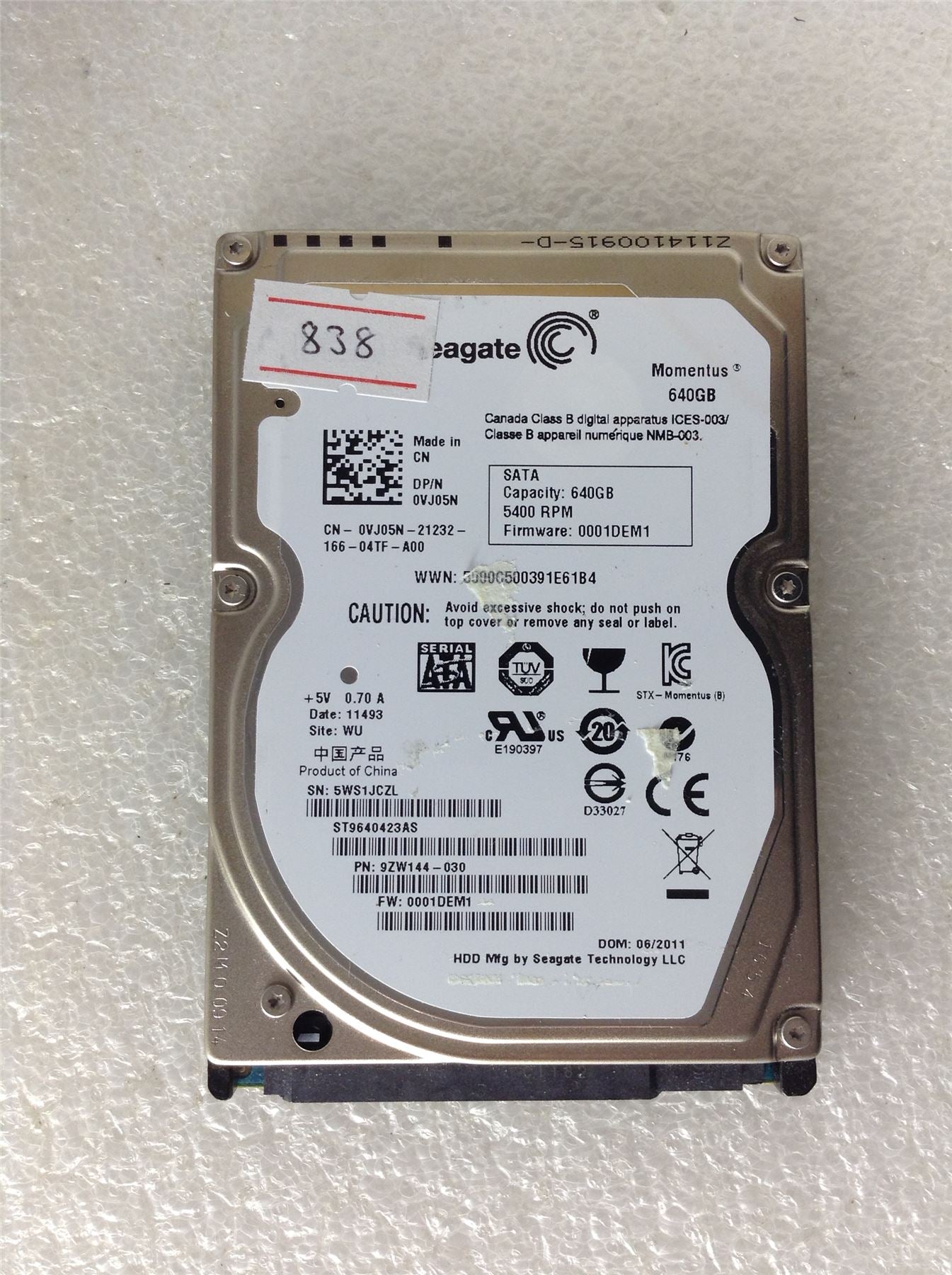 Hard Disk Drive HDD spares parts FAULTY SEAGATE 640GB ST9640423AS 9ZW144-030