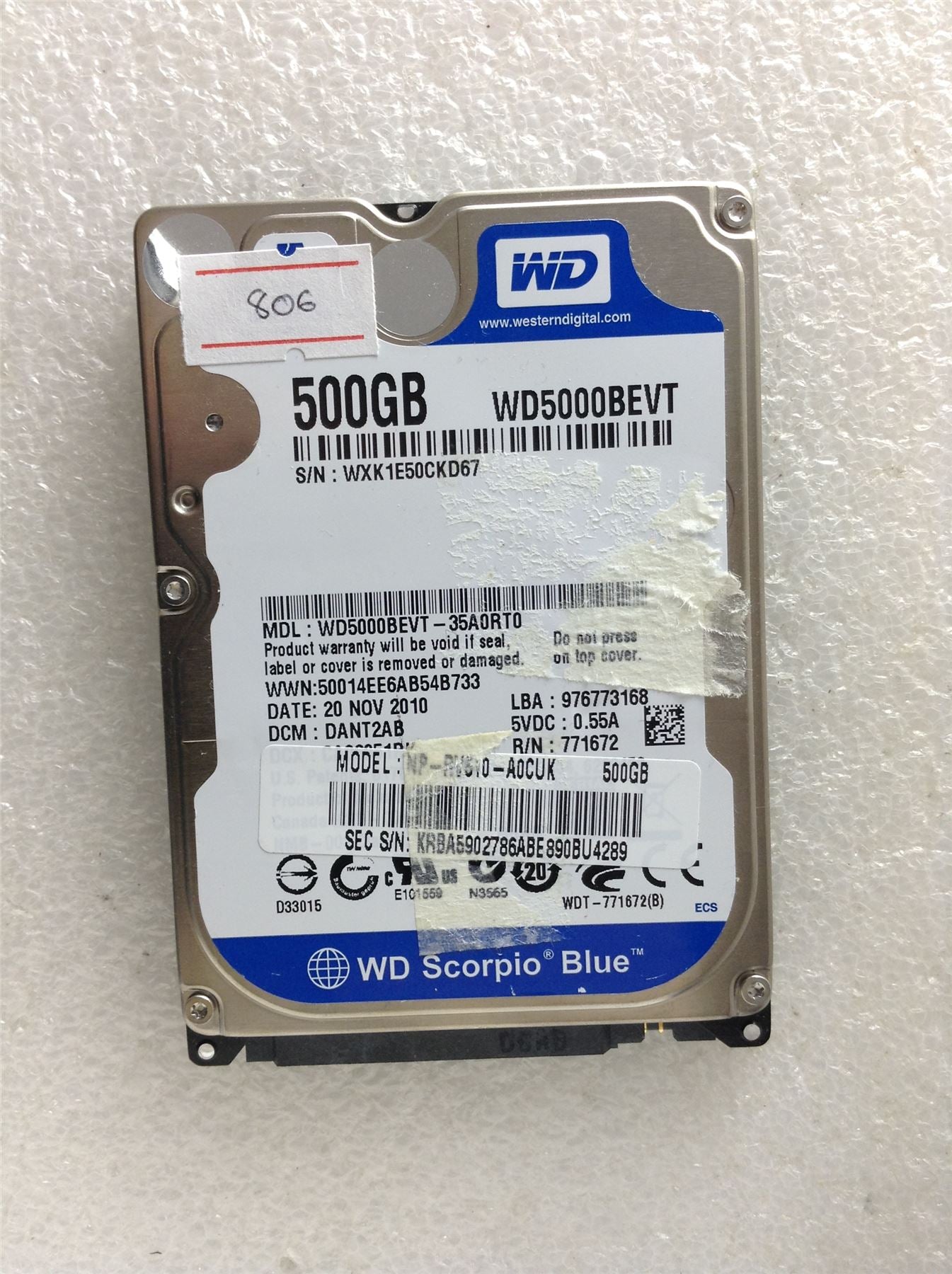 Hard Disk Drive HDD spares parts FAULTY WESTERN DIGITAL 500GB WD5000BEVT-35A0RT0
