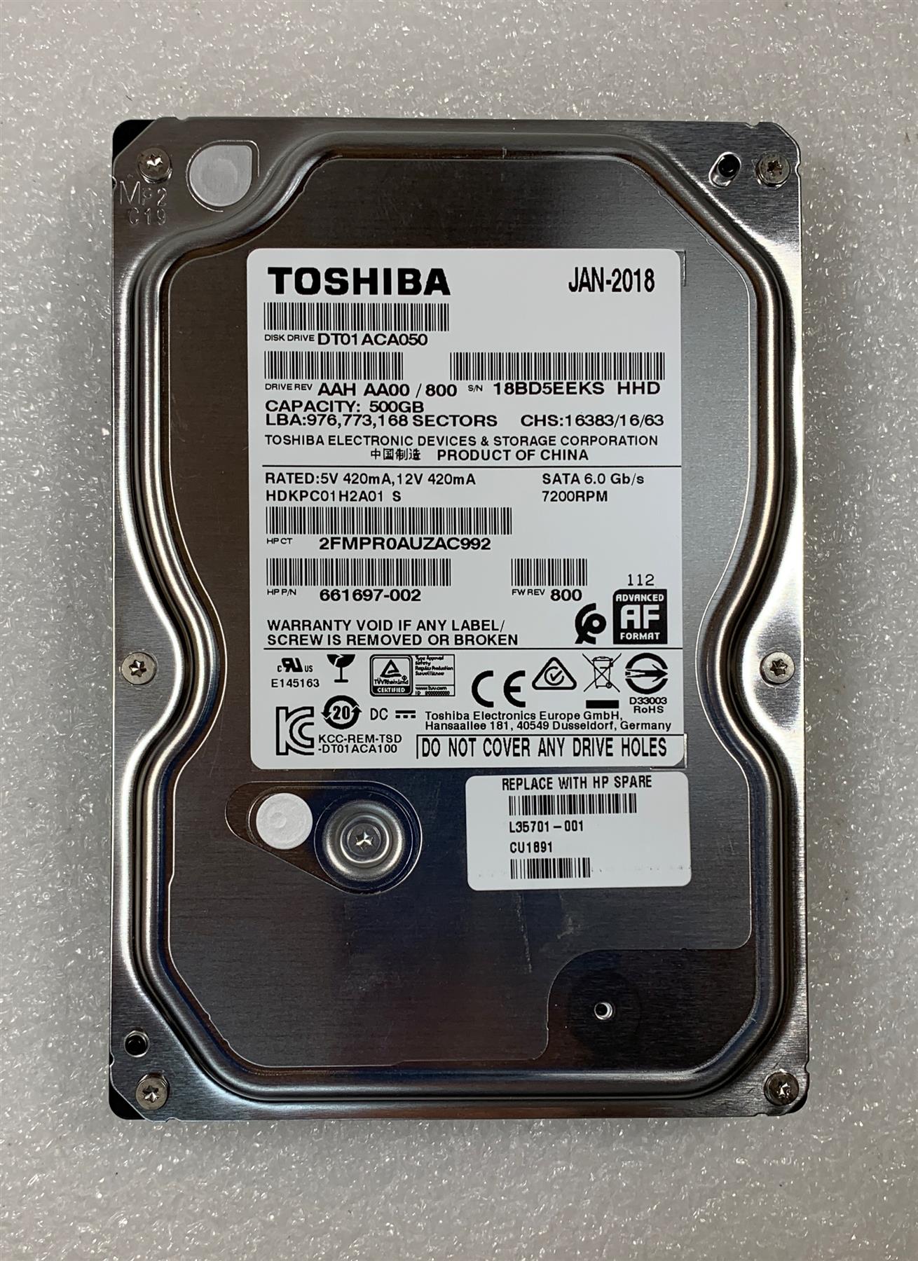 HP 440 G3 L35701-001 Toshiba DT01ACA050 HDD Hard Disk Drive 500 GB SATA 3.5 NEW