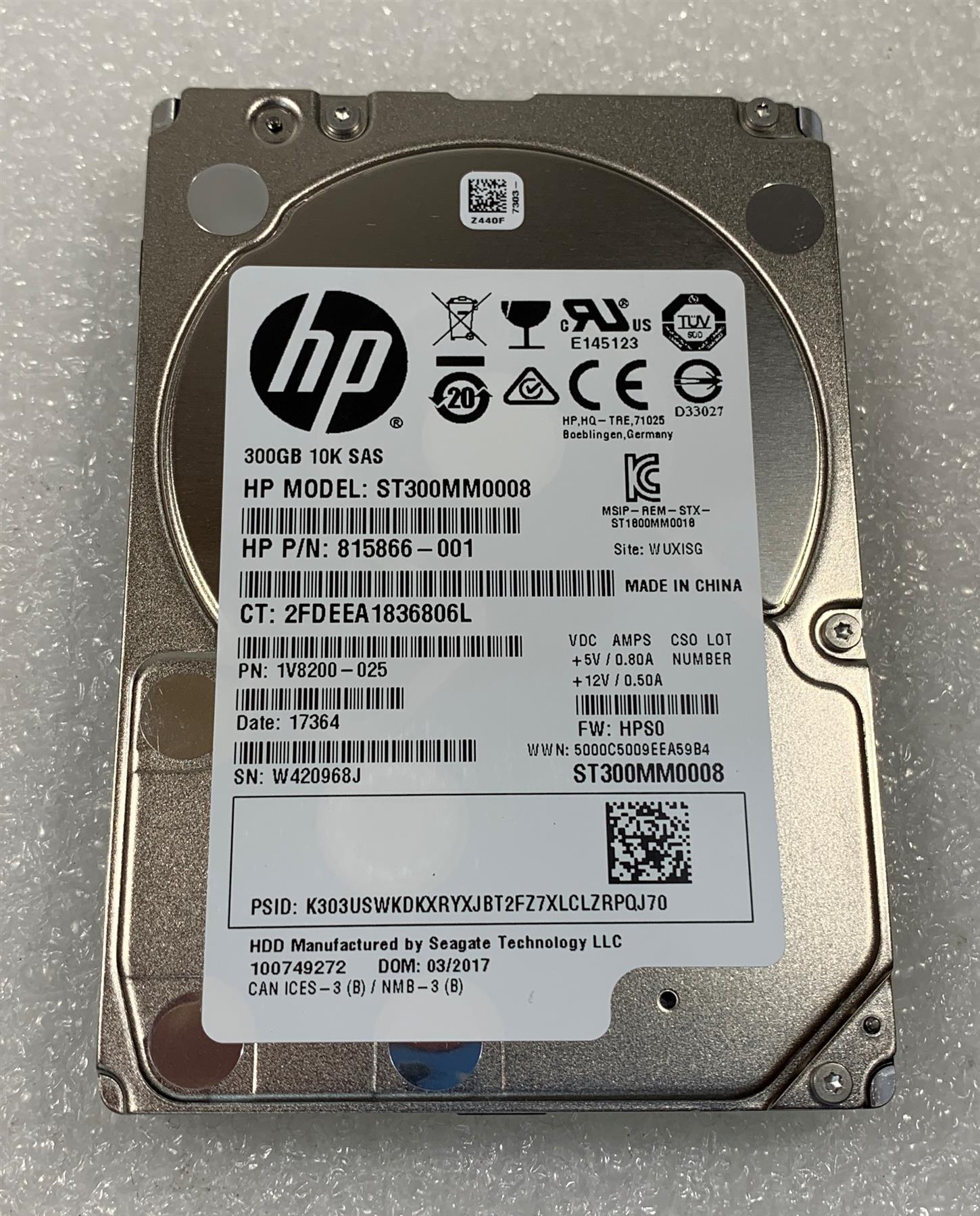 HP 758766-001 Seagate ST300MM0008 HDD Hard Disk Drive 300 GB 10K SAS 2.5 inch
