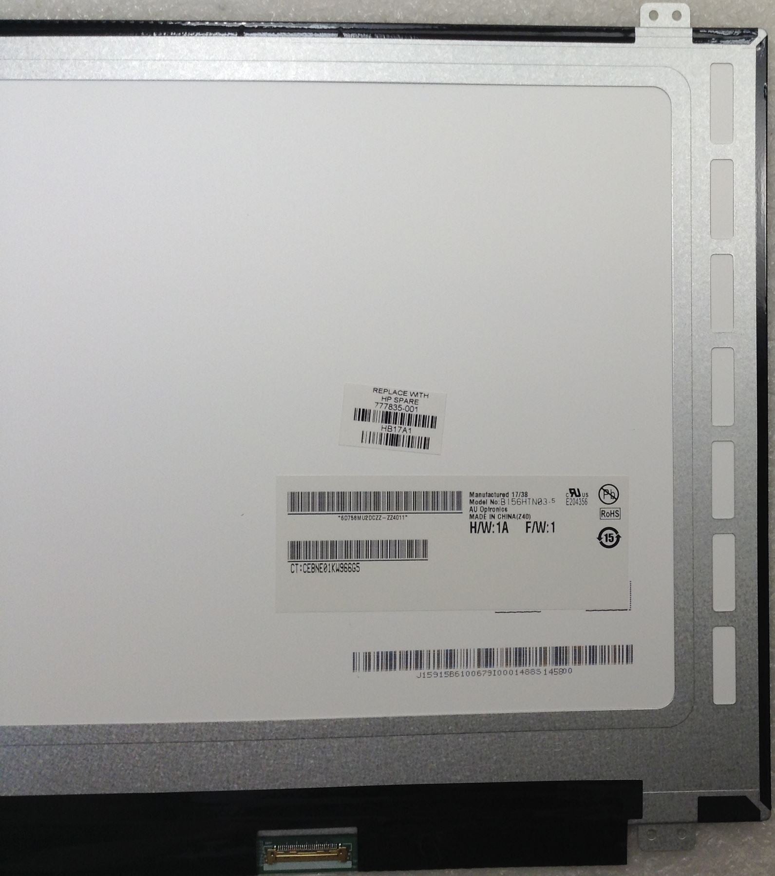 HP EliteBook 755 855 G2 PC 15.6-inch FHD LED SVA AntiGlare Raw Panel, 1920 x 1080 maximum resolution, 300-nits brightness, 6D758MU2DCZZ-ZZ4011, CT: CEBNE01KW966G5, Model No: B156HTN03.5, HP SP: 777835-001, brand new directly sourced from HP Genuine Display Panel